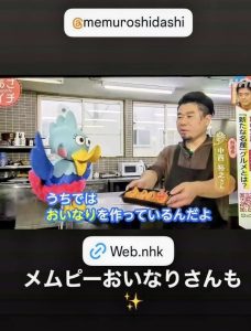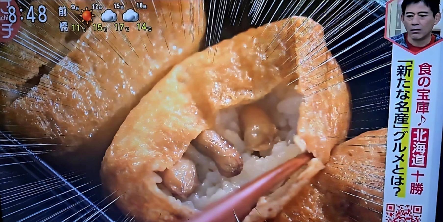 2025/11/13NHKの『あさイチ』という博多華丸大吉さんが司会をつとめる番組で、北海道特集の新たな名産物で芽室町のピーナッツが紹介されました。そのコーナーに芽室仕出し(株)の芽室ピーナッツいなり寿司(通称メムピーいなり)が、ピーナッツおいなりさんとしてTV出演いたしました‼